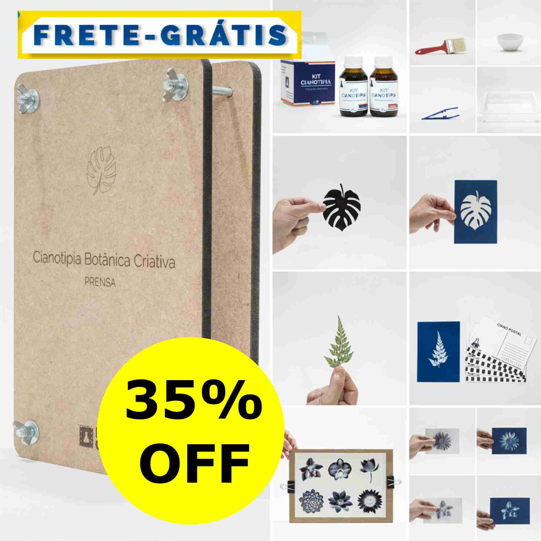 O Kit Cianotipia Botânica Criativa foi desenvolvido para unir o processo histórico da Cianotipia ao encantamento da impressão direta de elementos naturais.
